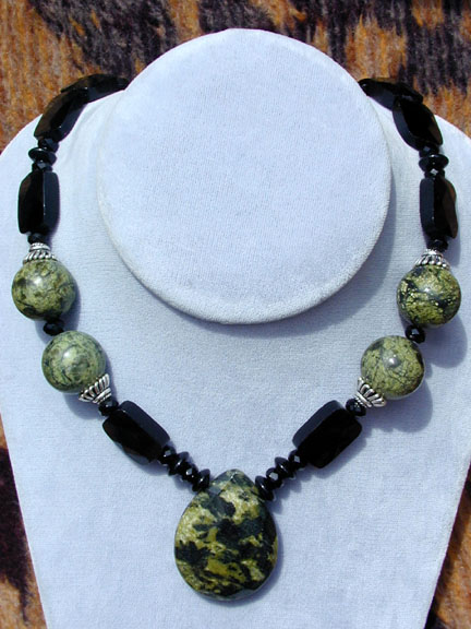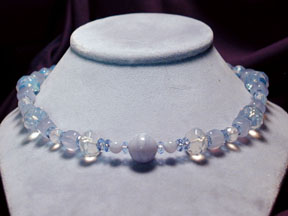 the piece ends with faceted opalite rondelles, sterling silver beads,