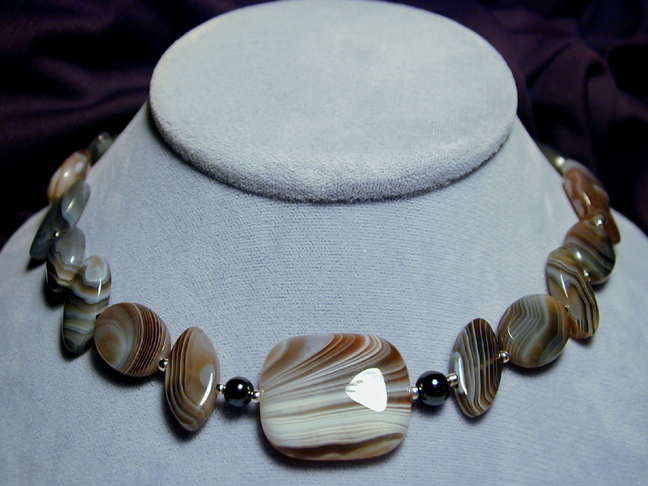 A beautiful and unique Botswana agate peanut is hung