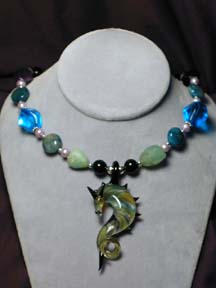highlighting an annealed, borosilicate lampworked glass dragon pendant