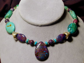 necklace! Gemstones of genuine turquoise, purple turquoise, sardonyx,