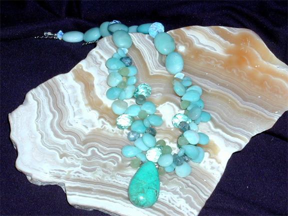 piece is made of genuine Peruvian chalcedony, Russian amazonite,