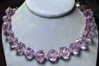 A strand of high-grade, deep-toned faceted rose quartz holds a Thai