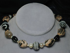lampwork beads, twisted glass “raisins,” black glass rondelles, and